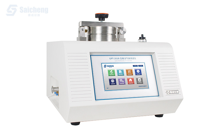 检测仪器:济南赛成仪器研发的“GPT-201B压差法气体渗透仪”。
